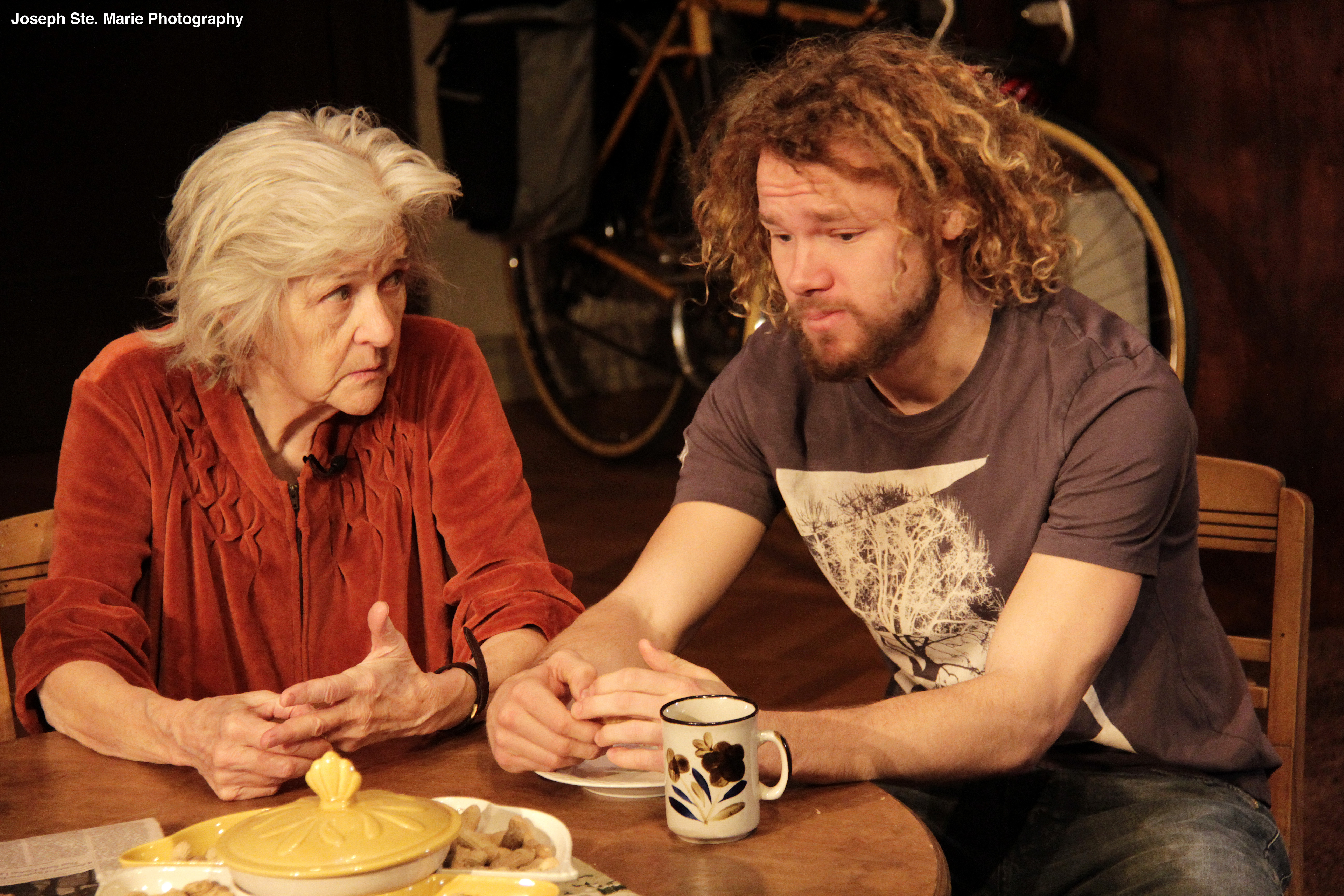 Once more, Roy Surette is at his directorial best. His imprint on this production is clear, concise and at all times fitting. 4000 Miles is a tight, intimate, magical piece that takes you on a trip through the lives of an elderly lady suffering from the start of dementia, and of her grandson, who arrives on her doorstep in the late hours of the night after an arduous bike trip cross country. He arrives with his own problematic baggage.