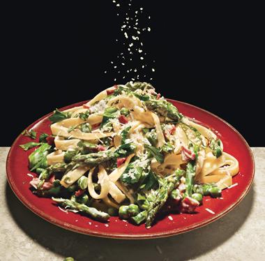Fettuccine with Asparagus, Snap Peas and Avocado