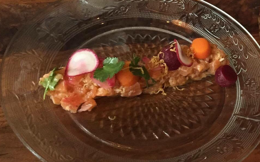 The menu is stacked with a large selection of seemingly very creative fusion dishes with many global flourishes with influences from China, Italy, Mexico, Thailand and of course, classic French cuisine. The dishes are separated into Crudos, dishes either grilled or roasted over charcoal and a smattering of others conventionally prepared,