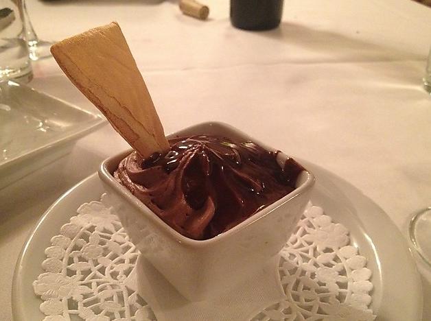 For dessert we chose a slice of blueberry tart and a classic chocolate mousse. The pie, made in house, was excellent with its crumb crust and rich pastry cream offset bya tangy topping of blueberry compote. How can you go wrong with a chocolate mousse, it was delicious rich and light and traditionally accompanied with a crisp ice cream wafer.