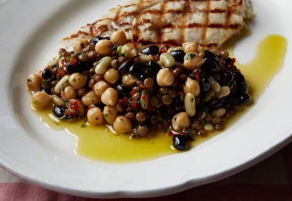GRILLED SWORDFISH WITH SARMORIGLIO AND BEAN SALAD