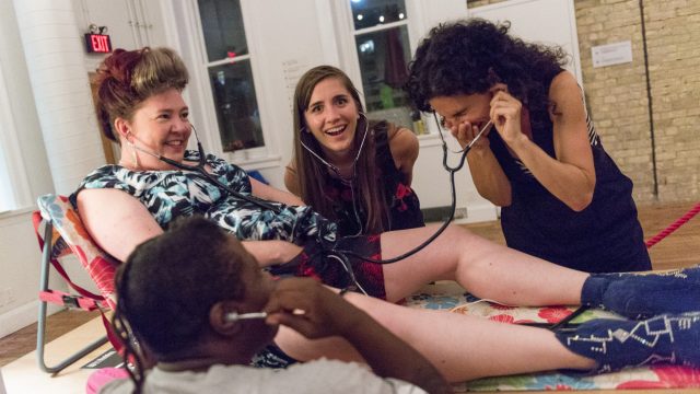 One of the highlights of the 13th edition of the OFFTA Festival is Montreal performance and video artist Dayna McLeod‘s sensational Intimate Karaoke, Live at Uterine Concert Hall performative installation in which guests sing their favourite karaoke songs through the site of McLeod’s body: Wearing headphones that contain your voice and requested karaoke song, this mix is wired into her vaginal canal, which acts as a uterine stage for the audience. Check out McLeod’s performative installation at the Monument-National on May 25 and 26.
